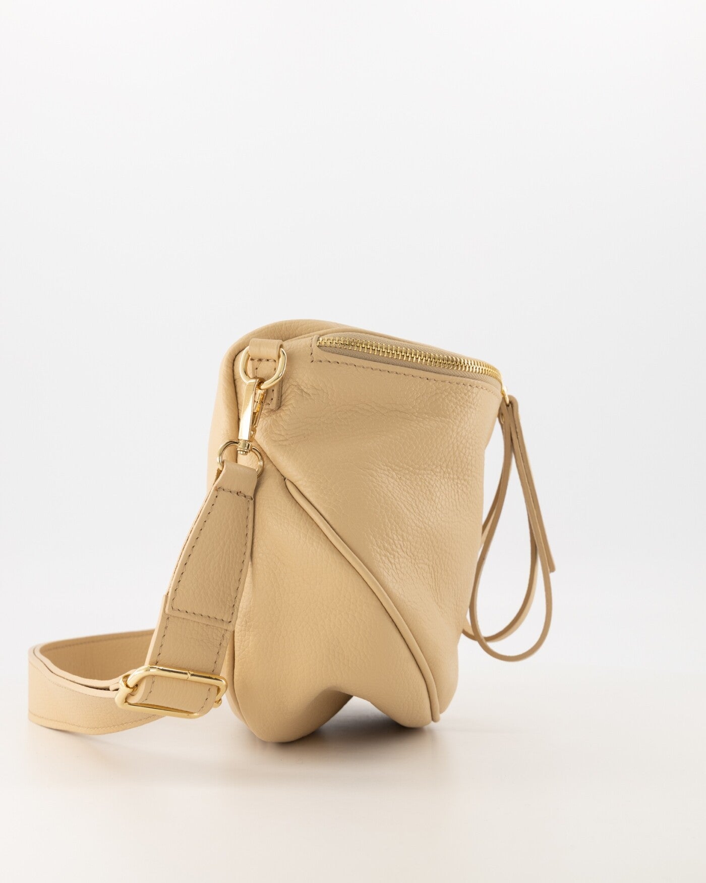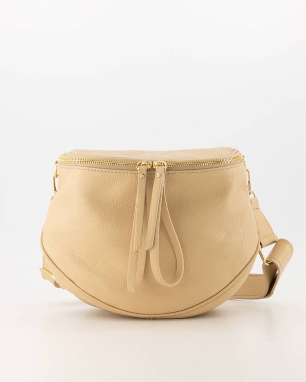 Tas Romsa is een leren fanny pack met een vakje aan de binnenkant met ritssluiting. De tas heeft een breed verstelbaar hengsel.
